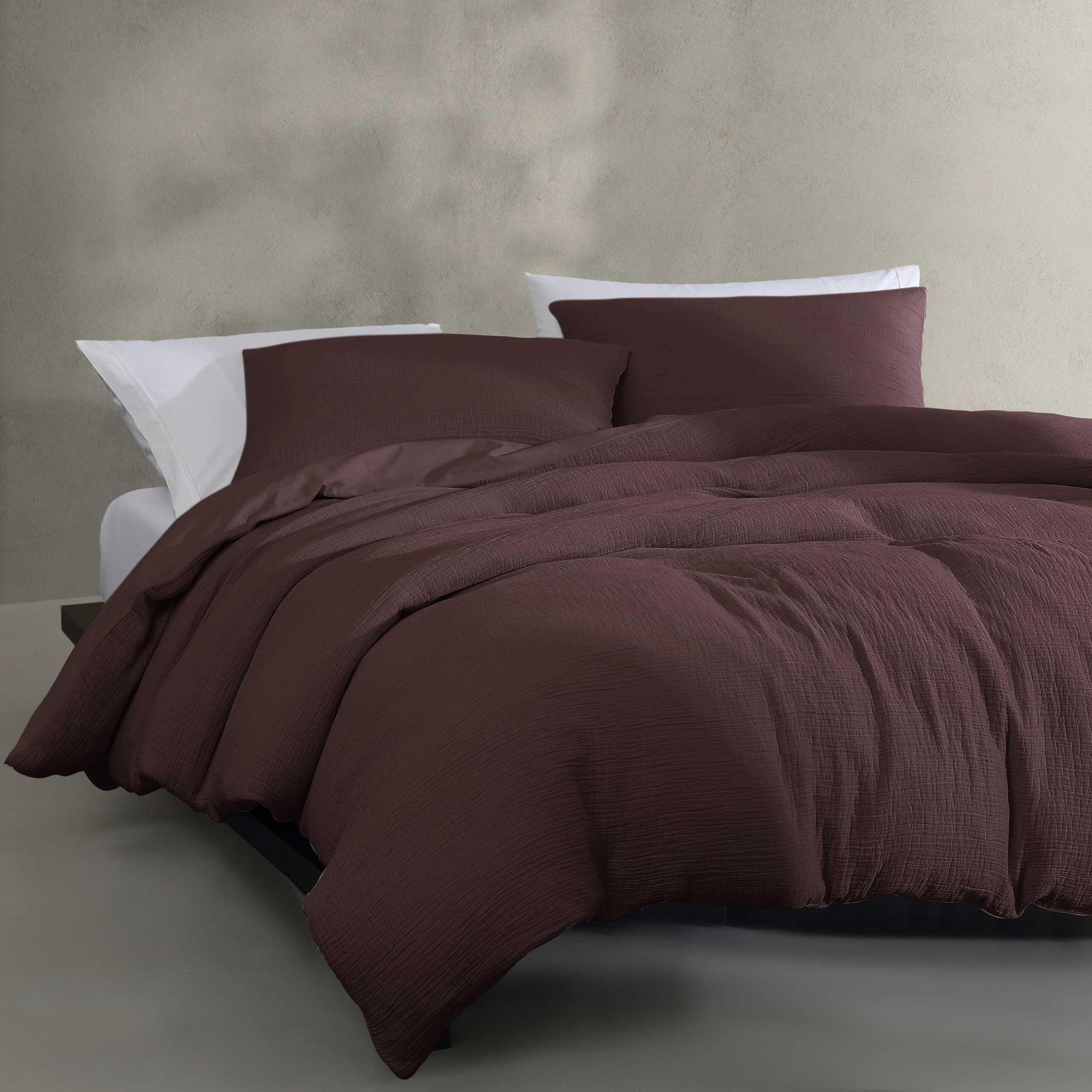 Calvin Klein - Queen Duvet Cover Set, 100% Soft Washed Texture Cotton Matelassé Bedding, 3 Piece Bed Set with Matching Pillowcases (Brown)—