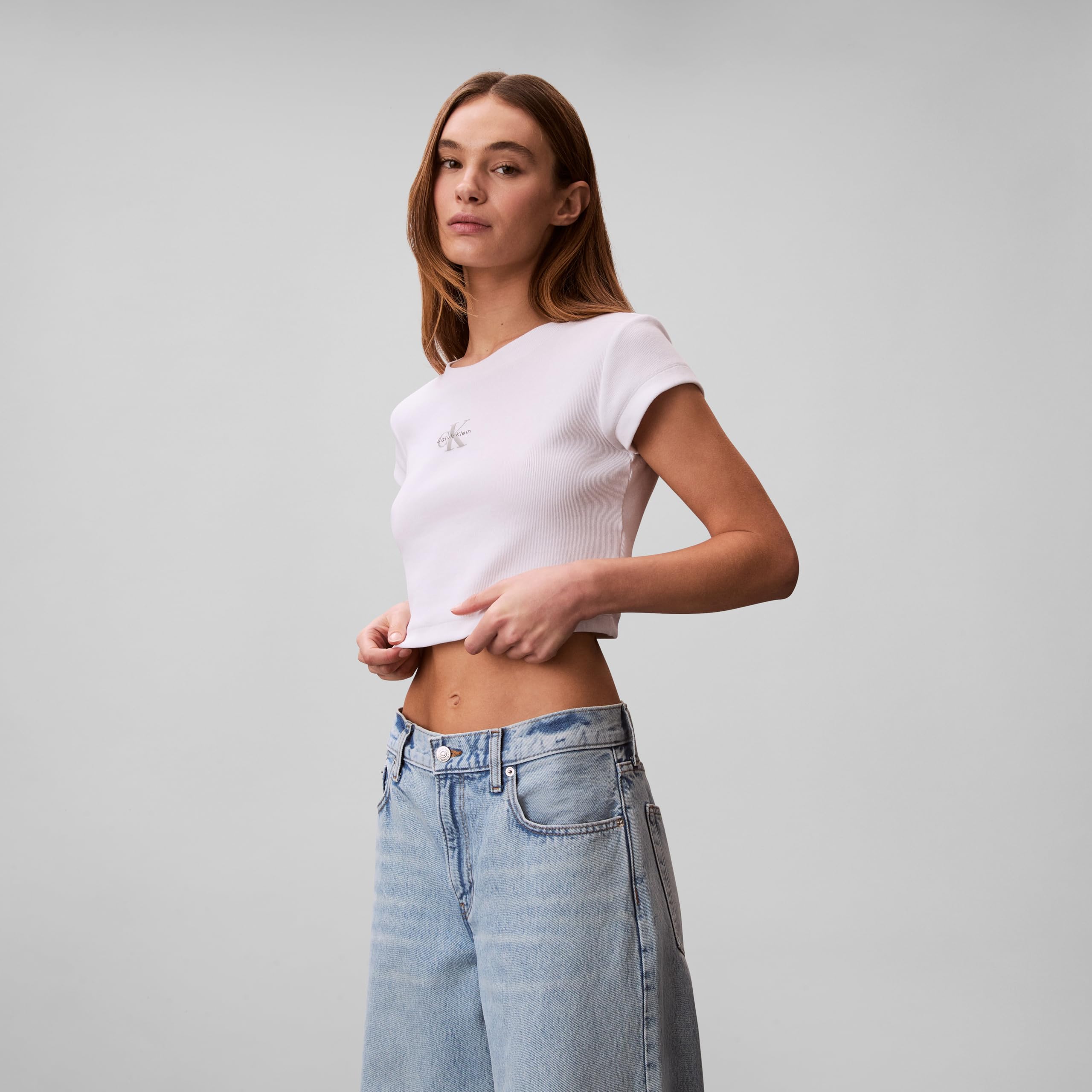 Calvin Klein Women's Monogram Logo Ribbed Baby Tee—