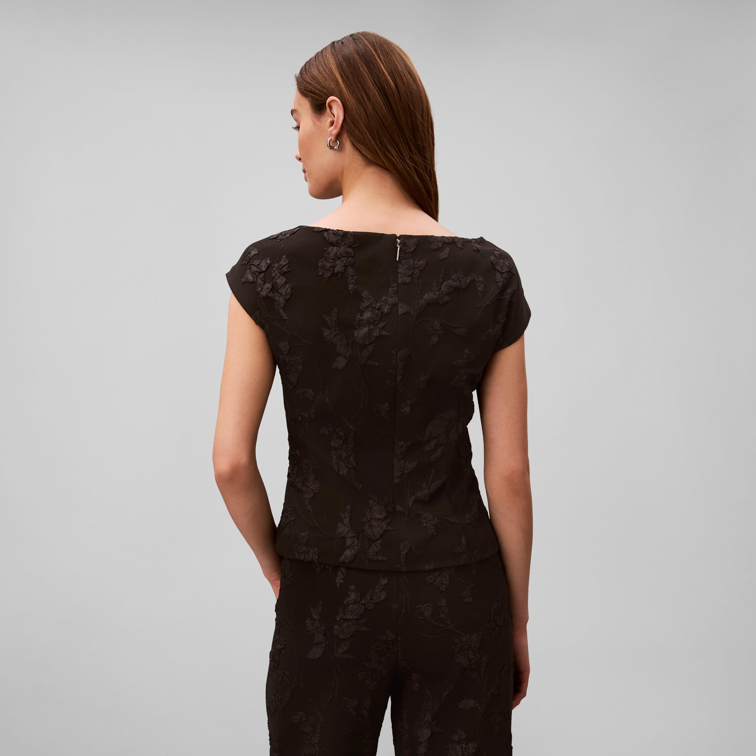 - FABRIC: Elegant floral motif on puckered cloque fabric adds texture and dimesion for a sophisticated look